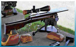 6 mm. Rifles are often used, although other calibers can be used. They are rifles manufactured expressly for this modality and that cannot exceed 4.76 Kg. In Light and 6.12 in Heavy. A viewfinder is used without limitation of magnification. The rifle is placed on a table or bench from which the shots are fired.