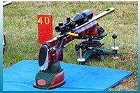 Ikuspegi teleskopikoz hornitutako fusilak erabiltzen dira, kalibrea eta ezaugarriak modalitate bakoitzaren araberakoak. Eserita dagoen tokitik tiro egiten da eta fusila dorre baten gainean pausatuta dago.