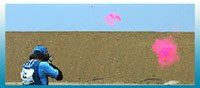 200 helbururi (8 helburuko 25 serie) egiten zaie tiro .12 kalibreko eskopeta batekin eta 28 gramo eramateko kartutxoekin, kanpoko zelai batean eta bertan dauden 5 puntu desberdinetatik. Plakek 11 cm-ko diametroa dute eta haien ibilbideak aldakorrak dira.