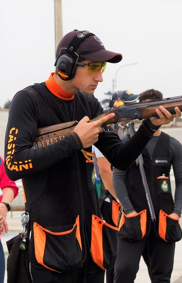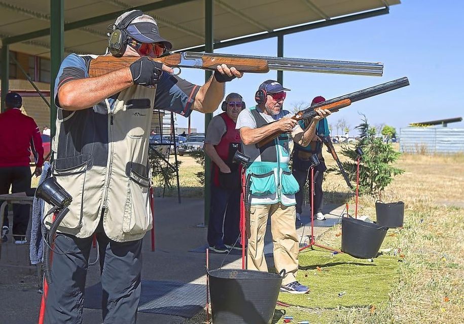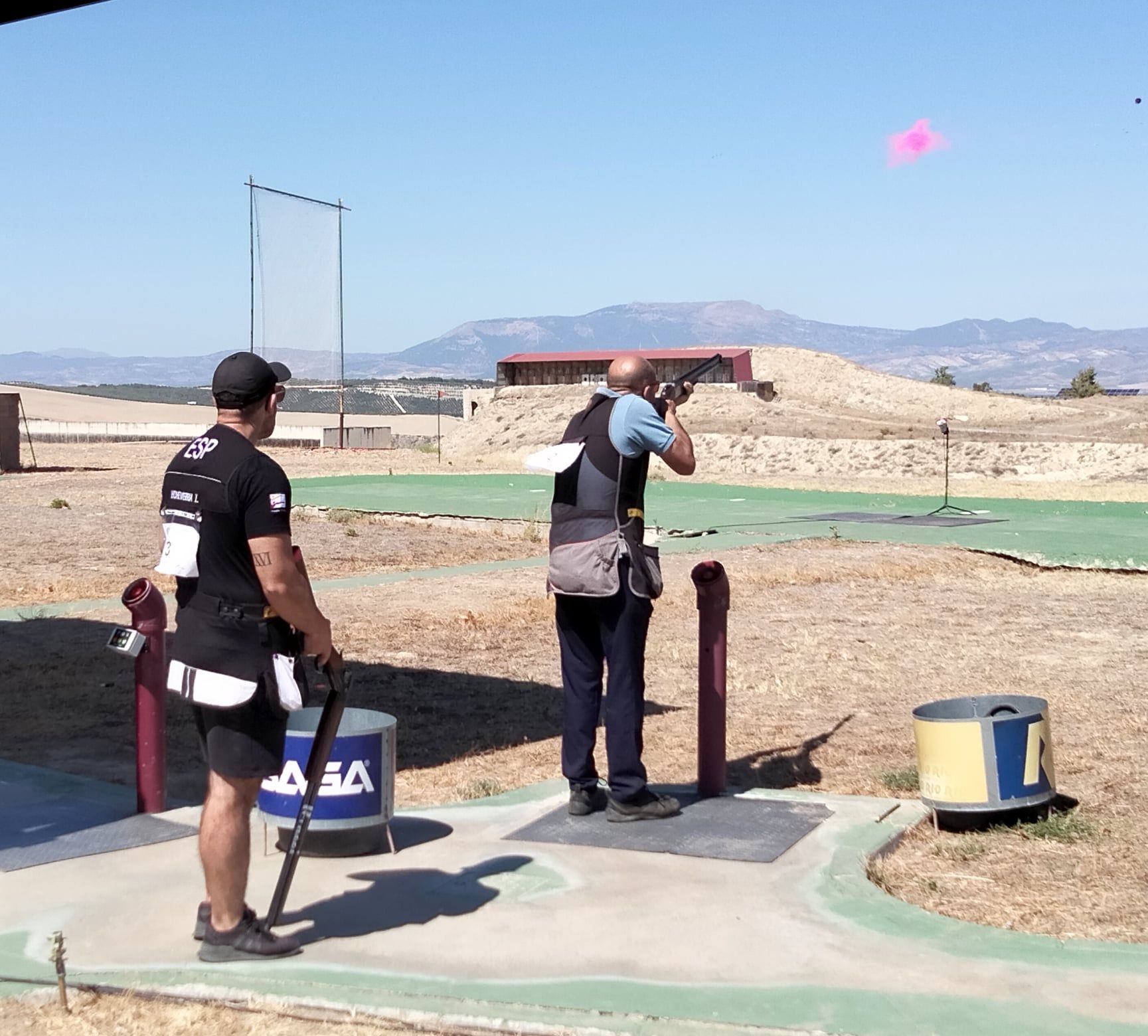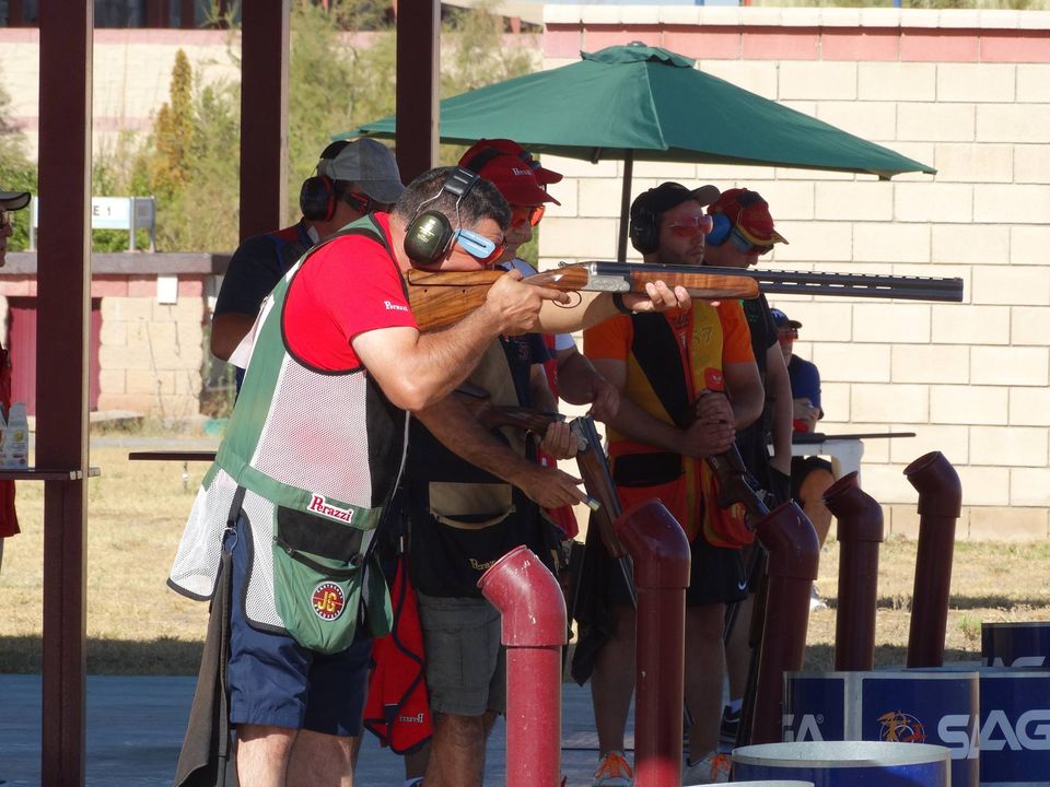 Se tira sobre un total de 150 platos (5 series de 30 platos) con una escopeta de calibre .12 y cartuchos con 24 gramos de plomos, en una cancha al aire libre y desde 5 puntos diferentes de la misma. Los platos tienen 11 cm de diámetro y son lanzados de dos en dos (dobletes), con una trayectoria conocida.