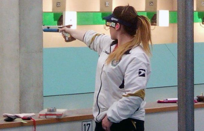 con una pistola de aire comprimido y balines de calibre 4,5 mm, sobre un blanco de 16 cm de diámetro dividido en zonas de puntuación concéntricas entre 0 y 10 puntos, y situado a 10 metros del tirador.