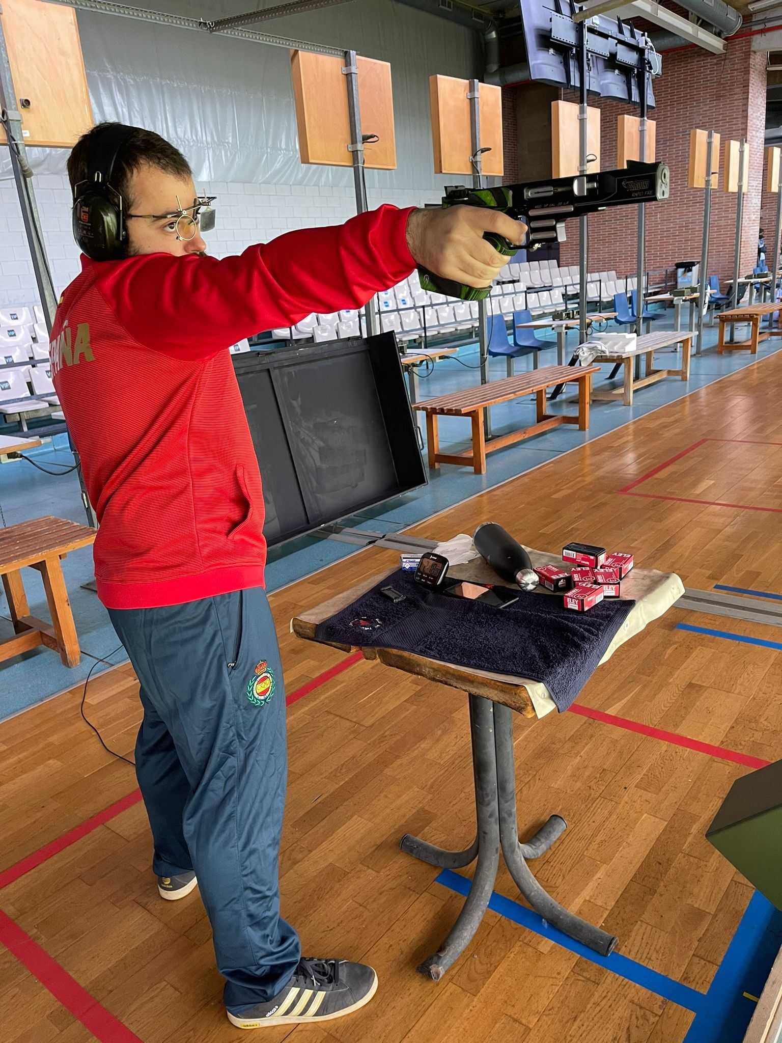 Treinta disparos de precisión y treinta de tiro rápido con un arma de calibre .22. Se realiza sobre blancos situados a 25m.