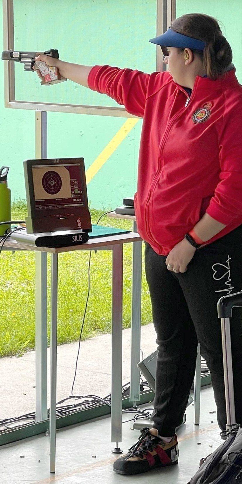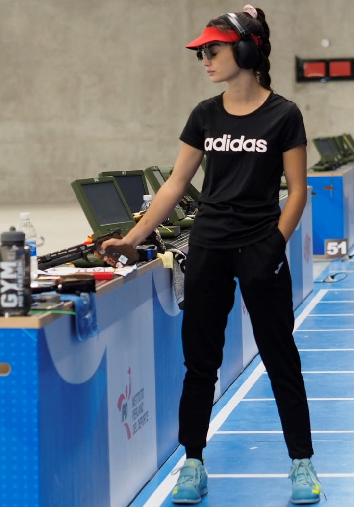 Con una pistola de calibre .22, se tira sobre 5 blancos diferentes de 50 cm de diámetro, divididos en zonas de puntuación de 5 a 10 puntos, y situados a 25 m en una galería al aire libre.