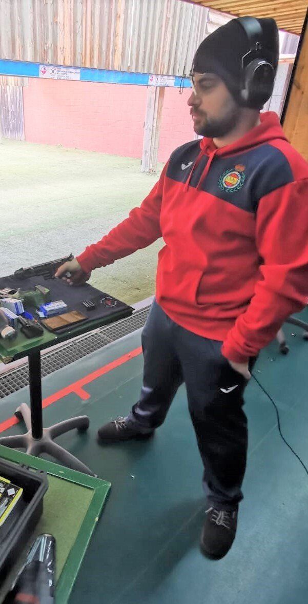 Treinta disparos de precisión y treinta de tiro rápido con una pistola de calibre 9mm. Se realiza sobre blancos situados a 25m.
